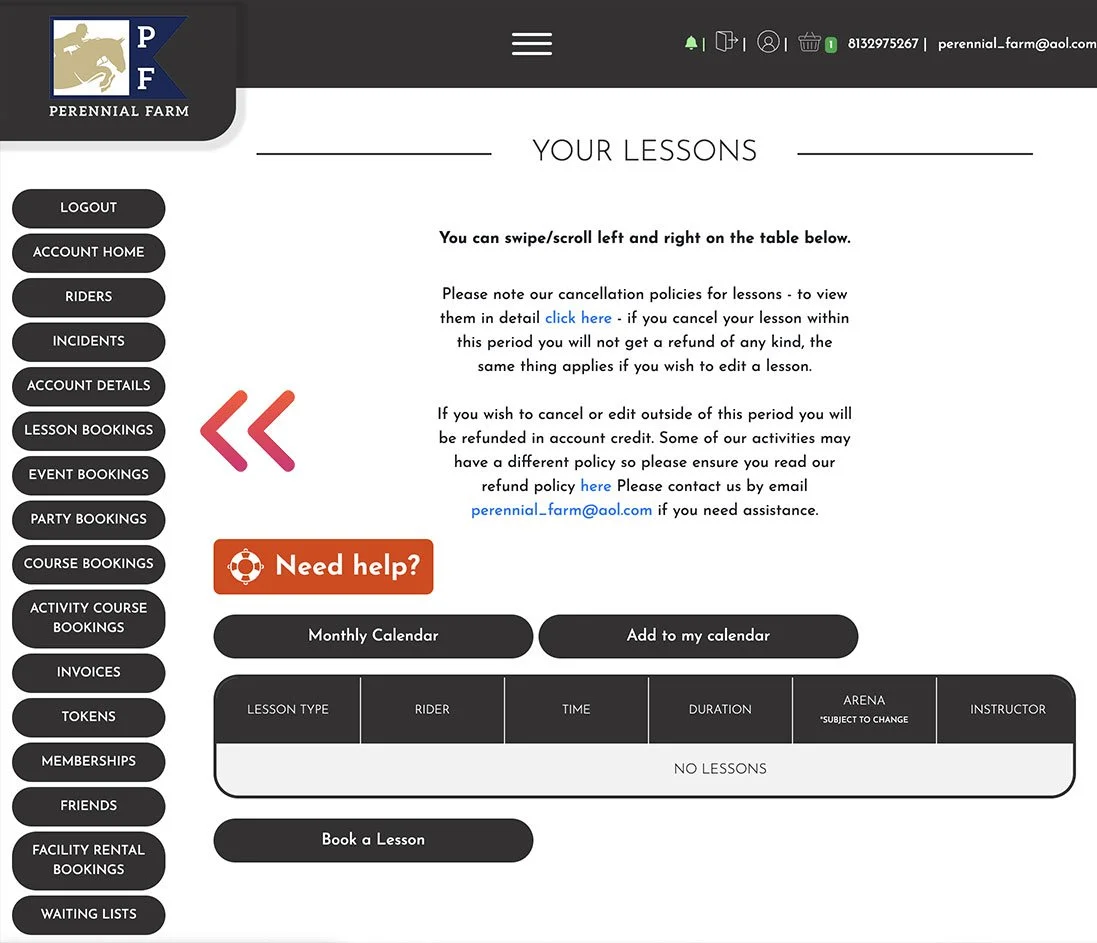 • If your rider takes more than one lesson per week, simply purchase multiple memberships so you have enough tokensScheduling Your Lessons
